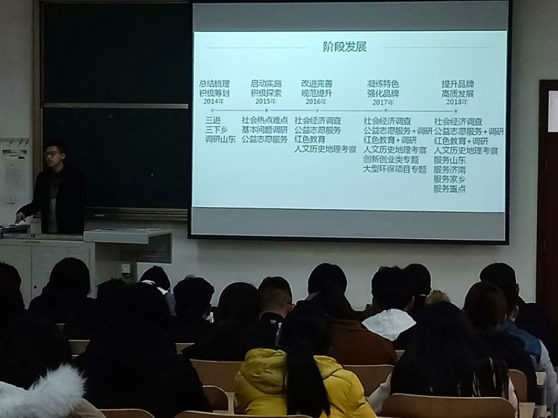 “四川黄龙文化与旅游的产业融合调研团队”队长管志翔首先介绍了暑期“三千计划”的实践意义及如何更加有效实现调研目的等内容,并从自身调研经历对实践地考察的选择及访谈时应注意的问题进行了经验分享。其次,骆晶晶结合调研课题“仲宫镇乡村旅游亲子产品创新调研”从选题立项、团队安排、素材整理等角度做了详细介绍。最后,“陕西延安市宝塔区柳林镇关于农村苹果种植产业化发展情况调研团队”路红燕、“山东金乡大蒜产业发展新动能及推动乡村振兴战略调研团队”郭鑫则从实践调研细节方面入手,对如何进行针对性选题和设计调查问卷进行了介绍。会间,优秀学生代表对同学们的疑问做出热情明细的解答,各个团队以其丰富多彩的活动经历,受到了广大同学的热烈欢迎,充分给予了同学们顺利开展实践的信心,保证了下一期暑期实践活动的顺利开展。
