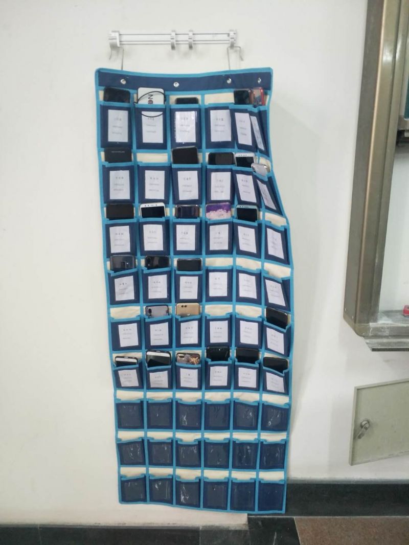 新澳彩资料给每个班级发放了一个手机收纳袋,上课前,学生将手机放进各自“专属”的手机袋里,每个手机袋上都标有姓名和学号, 整个手机收纳袋由各班班长保管。“无手机课堂活动”既可以防止学生上课玩手机,而且哪个学生旷课,检查下手机袋就一目了然。