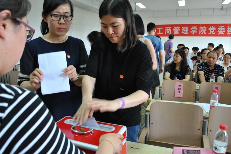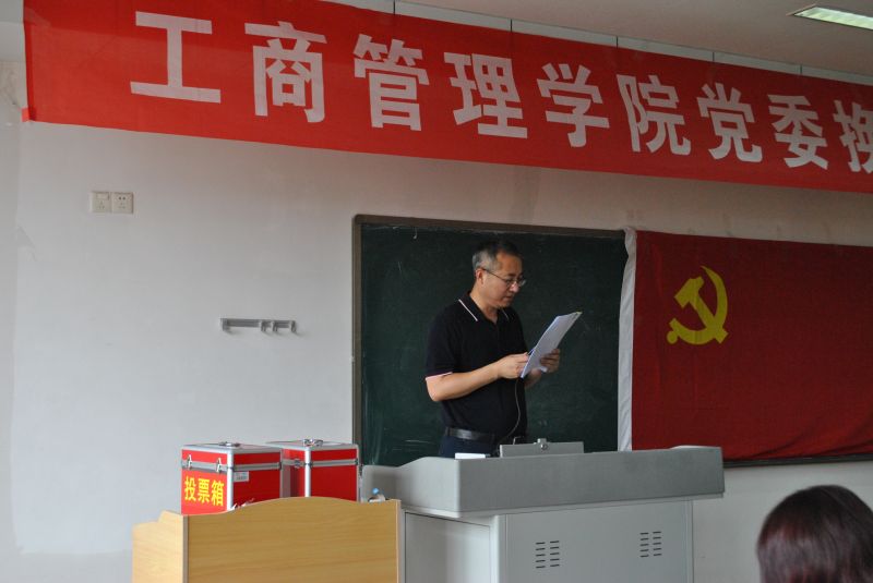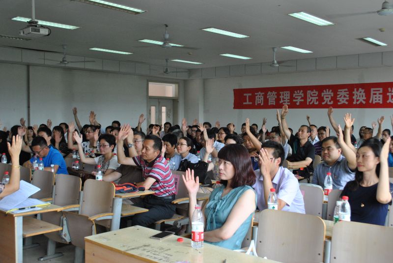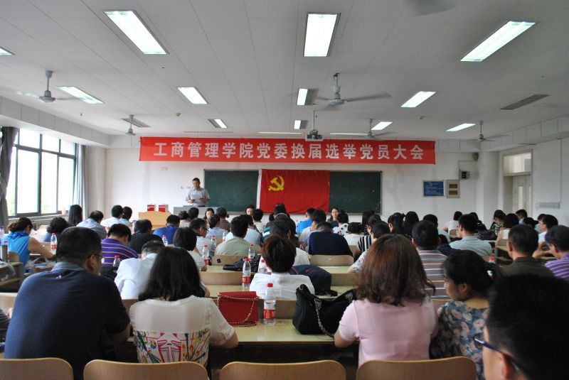 基层党组织换届选举工作实施细则》,6月21日下午14:30,在Y218,工商管理学院党委召开换届选举党员大会,会议应到党员110名,实到党员98名,符合选举要求。刘军同志主持会议。