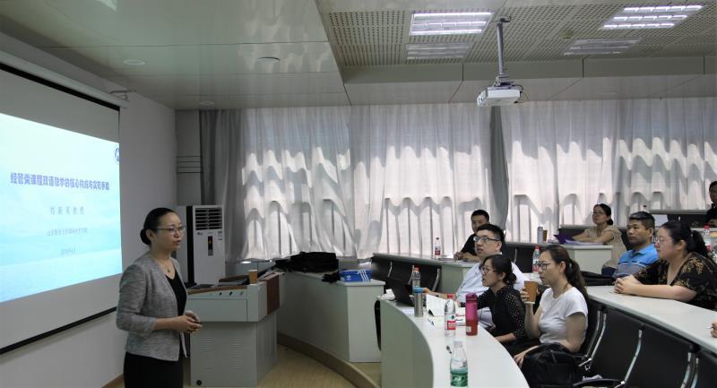 的双语和全英文教学经验。黄泰然博士从教学内容、授课方式、课程管理模式和考核评定四方面进行了比较分析,给与会老师分享了其教学过程中的优秀做法。刘新英教授做了《经管类课程双语教学的核心构成和实现手段经验分享——20年双语教学实践总结》的报告,从其长期从事双语教学、全英文教学的丰富实践经验出发,从健全双语教学机制、严格双语教学质量监管、强化双语教学的资源以及实现双语教学的过程化管理四个方面进行了系统阐述,同时也做了International Business课程的双语教学示范。