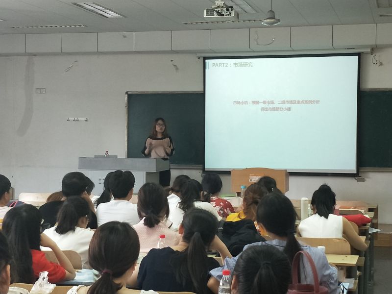 房地产经营管理系谭继存教授为大家做了本次专业课的开启,随后,夏巧霞经理与房管系的同学们进行了深入交流,就房地产项目的策划工作给大家进行了详细的讲解:第一部分“房地产前期策划”,让大家初步了解房地产策划流程——可行性研究、市场研究、客户分析定位、项目定位以及产品建议等;第二部分“房地产项目营销策划”,结合公司实际操盘案例(青建·公园里、青建·金樾府),为同学们专业讲解项目操盘六大营销策略、三大阶段等,与同学们积极互动,深入探讨。