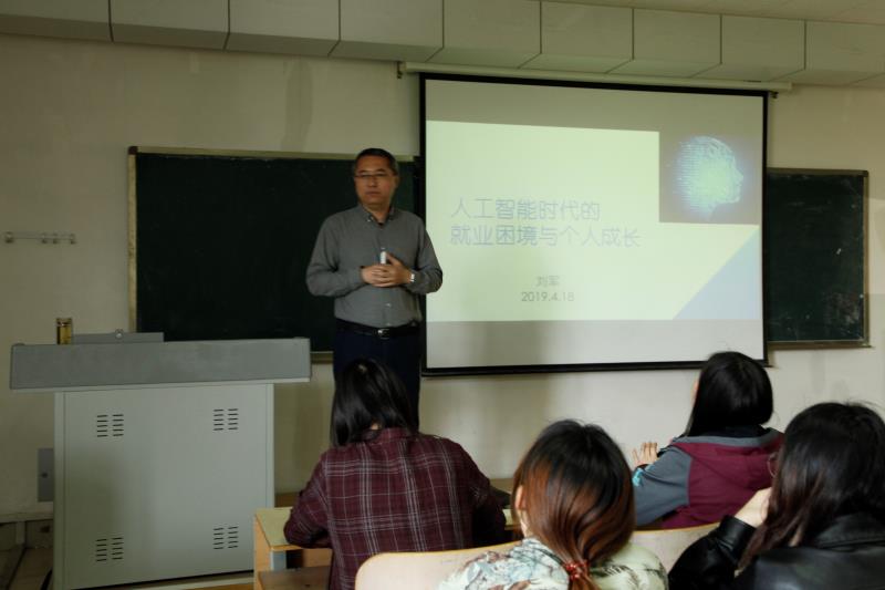 4月18日下午,在燕山校区Y218教室,我院院长刘军举办了题为《人工智能时代的就业困境和个人成长》的就业指导报告。报告会由新澳彩资料党委副书记张红燕主持,部分辅导员老师和200多名大三学生参加了会议。