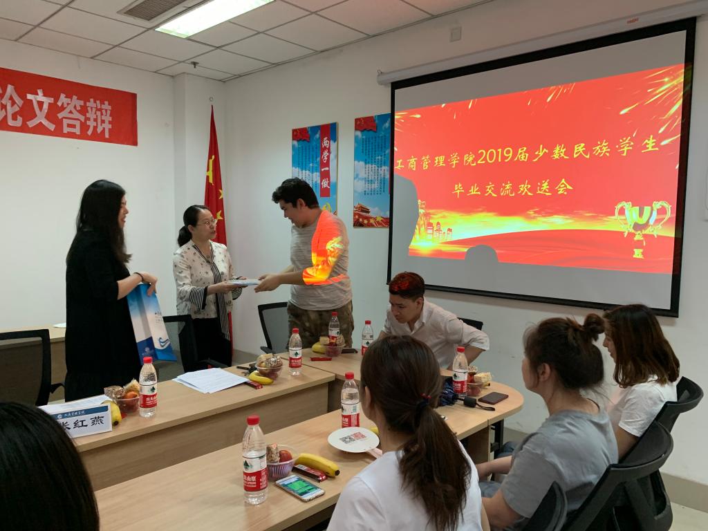 2019届少数民族毕业生欢送会于新澳彩资料会议室Y207举行。与会人员有新澳彩资料党委书记李旭刚、党委副书记张红燕、全体新疆籍应届毕业生、16级新疆籍学生、新澳彩资料民族事务部学生干部。毕业交流欢送会由陈盈君老师主持。