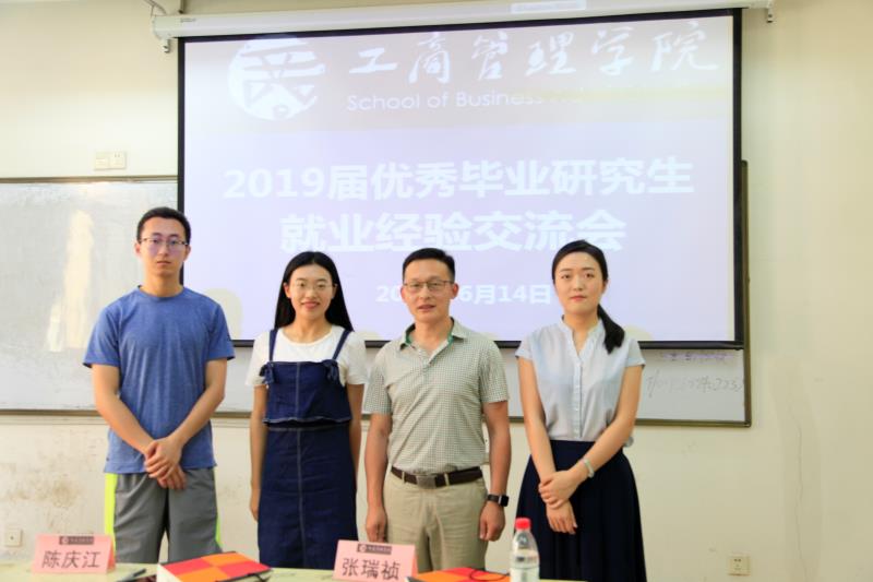 最后,陈庆江副教授祝贺毕业生找到心仪的工作,并对有求职意向的同学提出了两点建议,一是态度方面,要随心、定位、专注、敬业、主动、遂心,研究生三年要做好研究为求职打好基础;二是求职和工作中应注意高起点、低姿态、平常心。