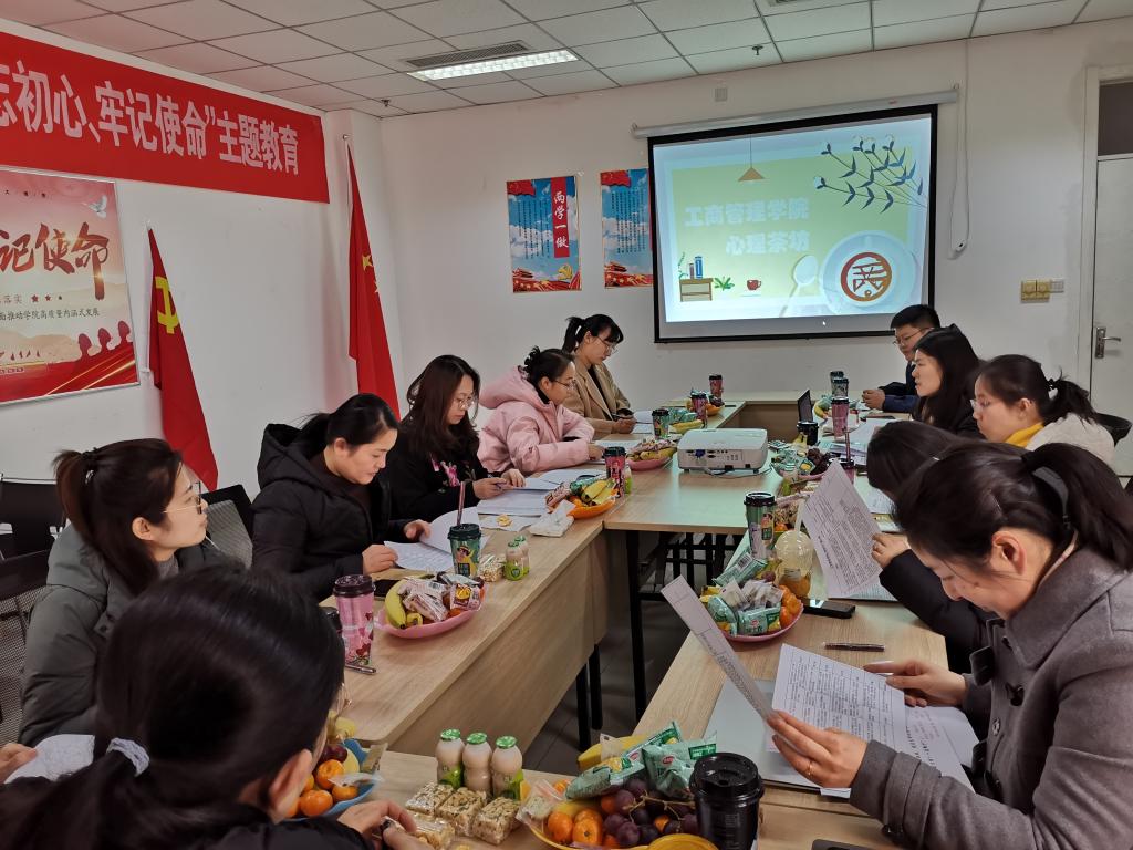 在逸夫楼举办心理茶坊座谈活动。旨在学习交流大学生心理干预和危机处理的经验和措施技术,同时也为化解学生工作团队的心理负担和压力。此次活动邀请了学校心理咨询中心的孙丽老师做专家指导。新澳彩资料党委副书记张红燕、全体辅导员老师参加此次活动。院学工办主任陈盈君主持此次心理茶坊活动。