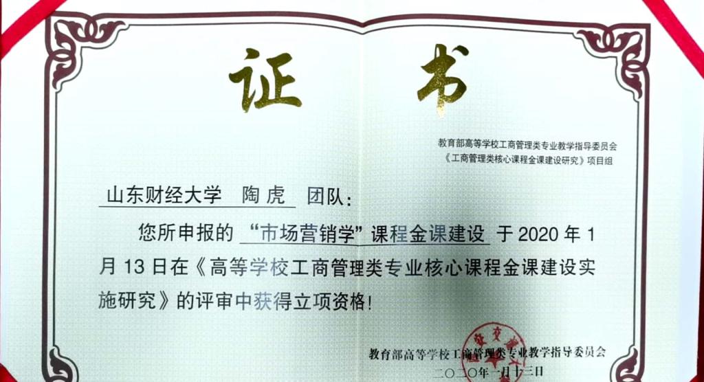 陶虎教授团队申报的《市场营销学》课程金课建设项目在《高等学校新澳彩资料