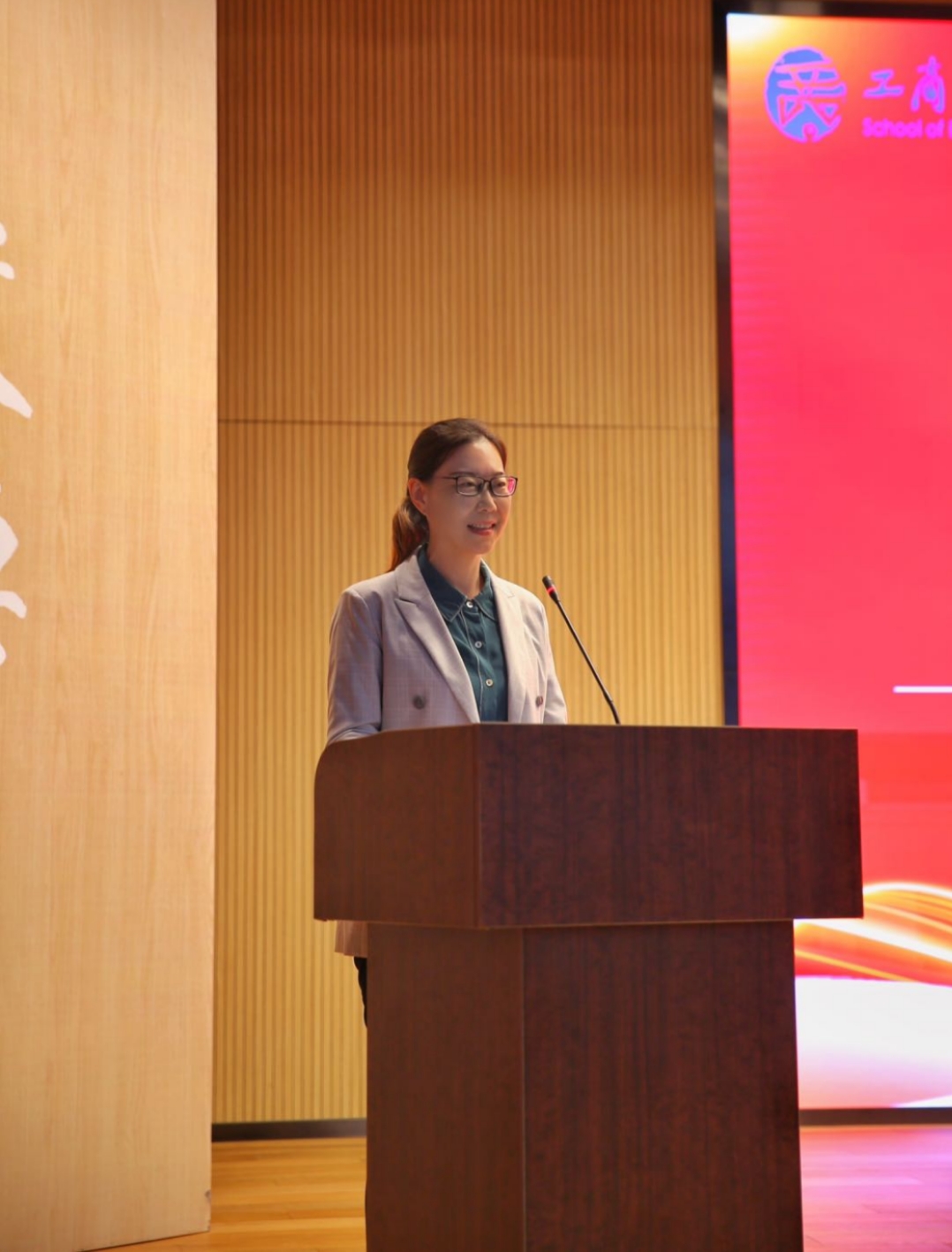 典礼在庄严肃穆的国歌中正式拉开帷幕。刘军在致辞中对2020级新生的到来表示热烈欢迎。他指出,当代大学生要以学习为第一要务,合理规划学业生涯。同时也要注重培养高尚品格,追求高品质生活方式。学会选择、学会合作、学会宽容、学会面对自我。最后他强调,学以恒为贵,希望同学们早日成为为国有用的工商人。教师代表刘侠在发言中分享了学习是一种习惯、自律是一种力量、做人是一种担当三点感想。在校生代表张文龙和新生代表董子寒也在发言中向同学们提出了以梦为马,不负韶华,珍惜大学校园青春时光,积极奉献青春之力的美好期望。