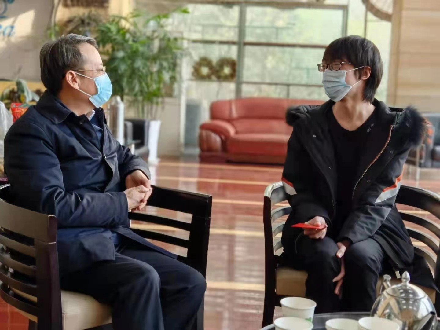 韩作生一行来到天舜大厦,向张宝良送去慰问品和慰问金,并详细询问了学生家乡的疫情情况和在校学习生活状况,叮嘱要时刻注意科学防控疫情,和家长、老师保持联系,合理安排假期时间,有困难随时向学校反映,学校将及时解决落实,相信在济南一定能够过一个安宁祥和的春节。