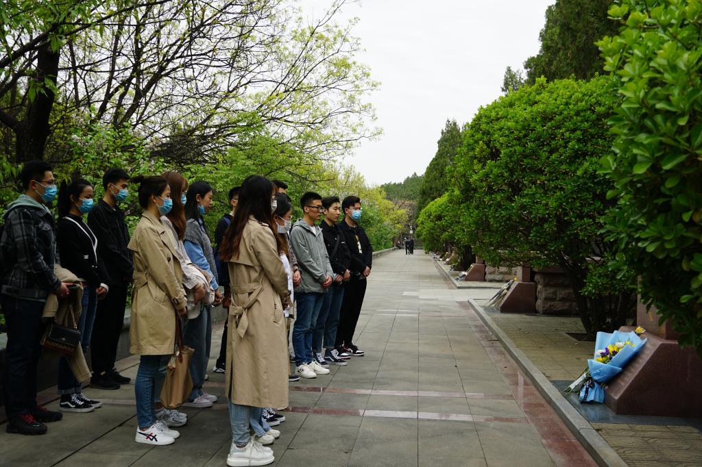 革命烈士纪念碑前,白色的雏菊挺立,同学们鞠躬致哀,深情缅怀革命英雄丰功伟绩,表达对革命先烈的追思和敬仰之情。在烈士名录中,他们看到了很多年龄不满二十的前辈在战场中壮烈牺牲,深受触动----和平来之不易,应当好好珍惜这来之不易的和平年代,努力学习报效祖国致敬先烈。