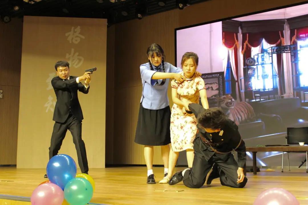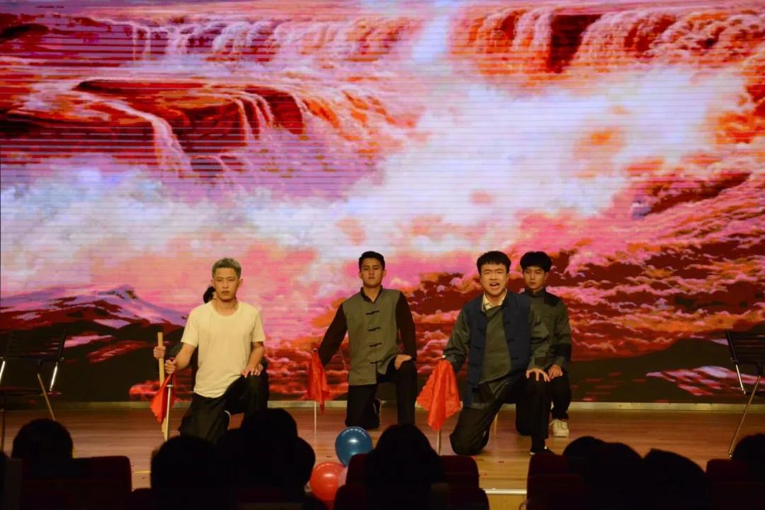 师生合诵《与历史对话》借用错位时空,讲述了先烈敢想、敢说、敢做、敢将日月换新天的激昂一生,跨越时空的对话感染者青年以兴国之志铸强国之业,以爱国之诚践报国之行,立志为中华民族伟大复兴的宏伟蓝图燃烧自我,奉献终身。看不见的硝烟,勾心斗角的战场,有志青年运用自己的智慧与力量与敌斡旋,锻造出一把打开新中国大门的《钥匙》。轻歌曼舞,筝鼓和鸣,百年建业,终迎盛世。《太平盛世》以光、声、乐、舞,呈现一百年来党领导下国运昌隆的繁华盛景。