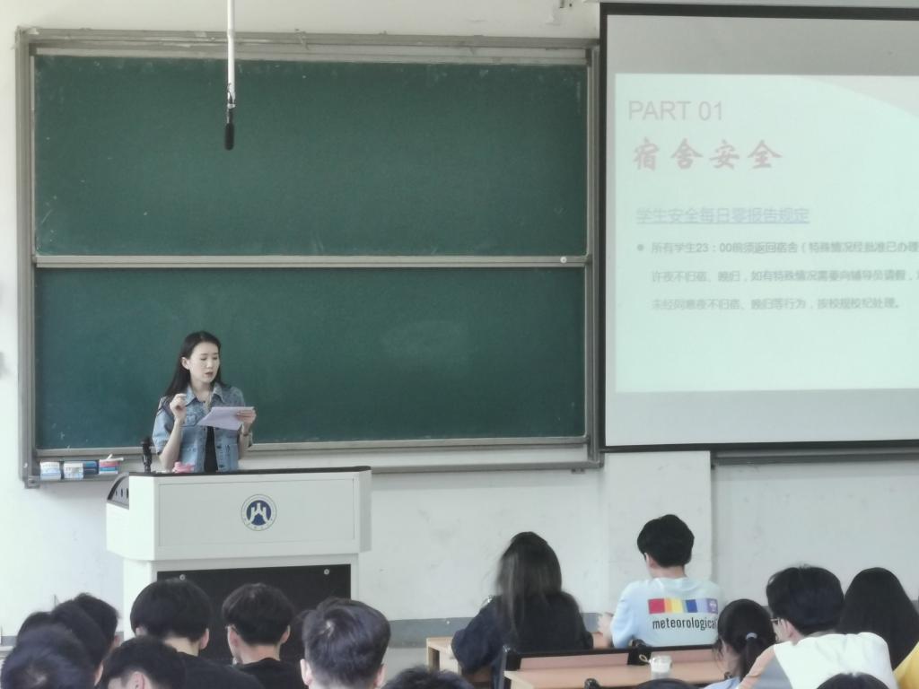 此外,班会还传达了学校《学生安全每日零报告规定(暂行)》、《关于做好2021届毕业生教育管理服务工作的通知》、疫情防控、宿舍消防安全大检查等相关文件通知。老师们借助两段视频介绍了电动车着火的惨痛案例,重点强调了宿舍消防安全的重要性。班会要求全体学生遵守校规校纪,保持手机畅通,保障人身安全;各宿舍长严格执行每日零报告规定,每晚23:00前报告未按时返还宿舍的人员情况;党员和学生干部一定要以身作则,充分发挥模范带头作用,协助学校做好疫情防控、宿舍消防安全检查,同时作为班级反诈宣传员,深入同学中进行防诈骗宣传,建设平安校园。