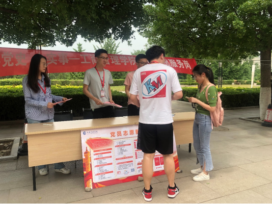 志愿服务活动过程中,不少学生咨询入党的条件等问题,了解入党流程与入党所需材料,询问毕业生党组织关系转接等问题。在与群众交流中,学生党员为大家讲述党史,宣传党的优秀思想,初步达到了活动的目的。