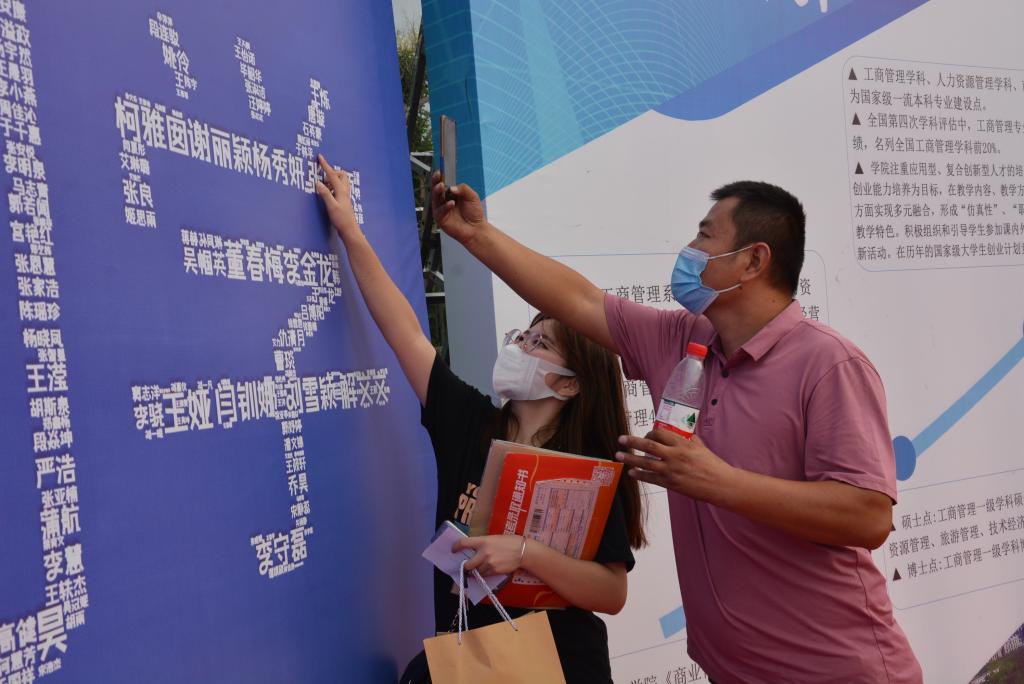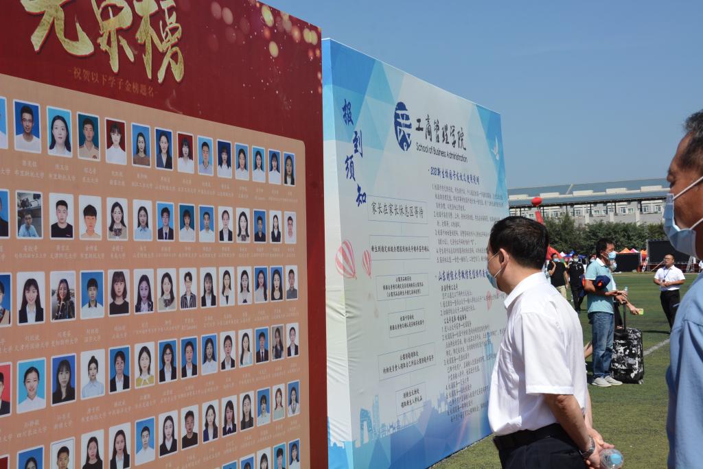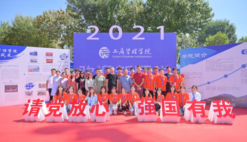 展板设计独具一格,由全体新生名字组成的“欢迎新同学”与湛蓝的底色相互搭配,体现出新澳彩资料把每一位学生放在心上,致力于营造工商团结大家庭;左右并立的介绍新澳彩资料发展历程与精彩活动的侧展牌,则为新生详细描述了工商院曾经取得的优异成绩,展现出工商特有的风采;而展板正前方醒目的“请党放心,强国有我”立体字提醒新生不忘强国之志,呼应建党一百周年主题,与展板相互照应,成为迎新现场一道引人注目的风景线。