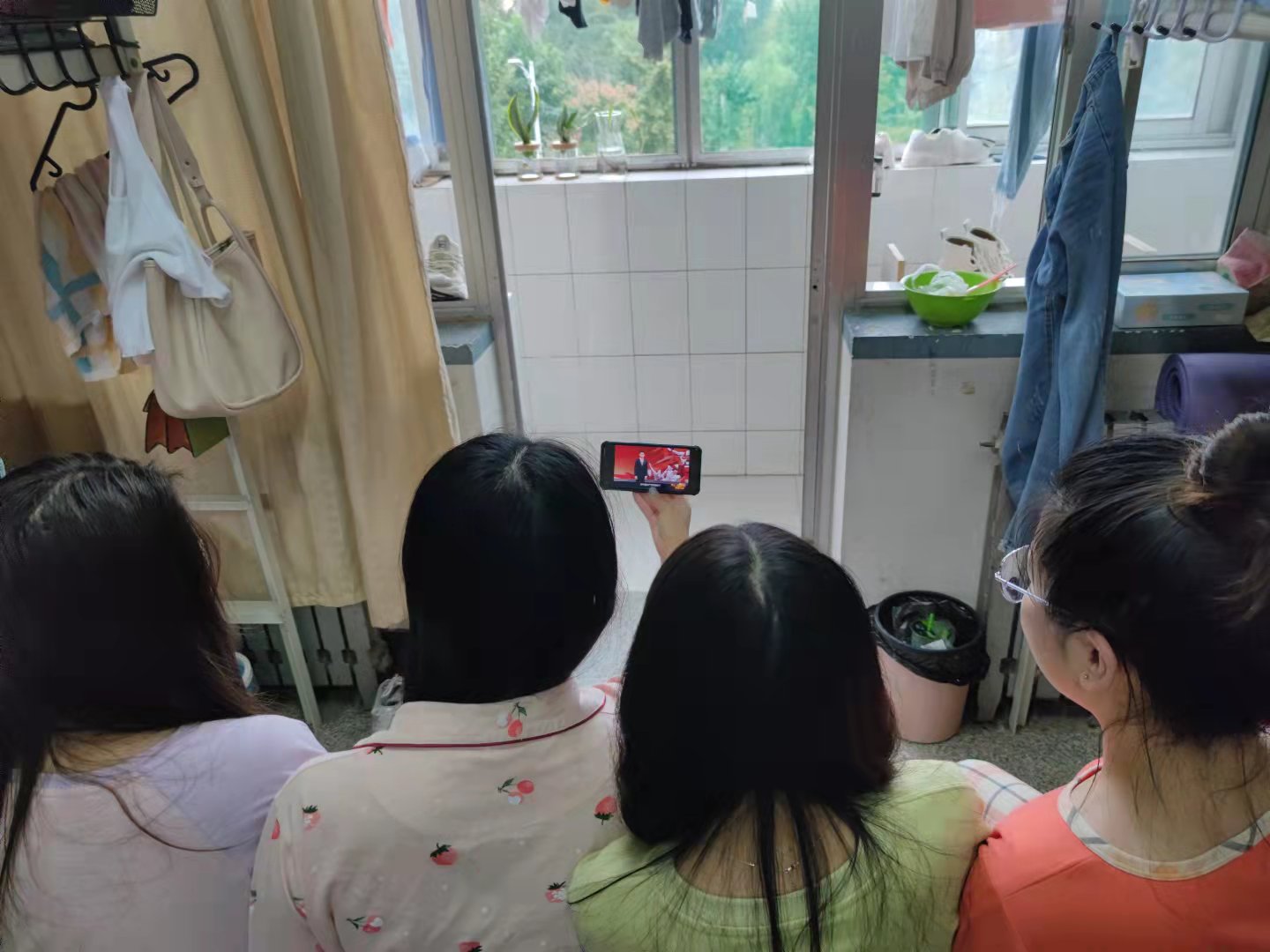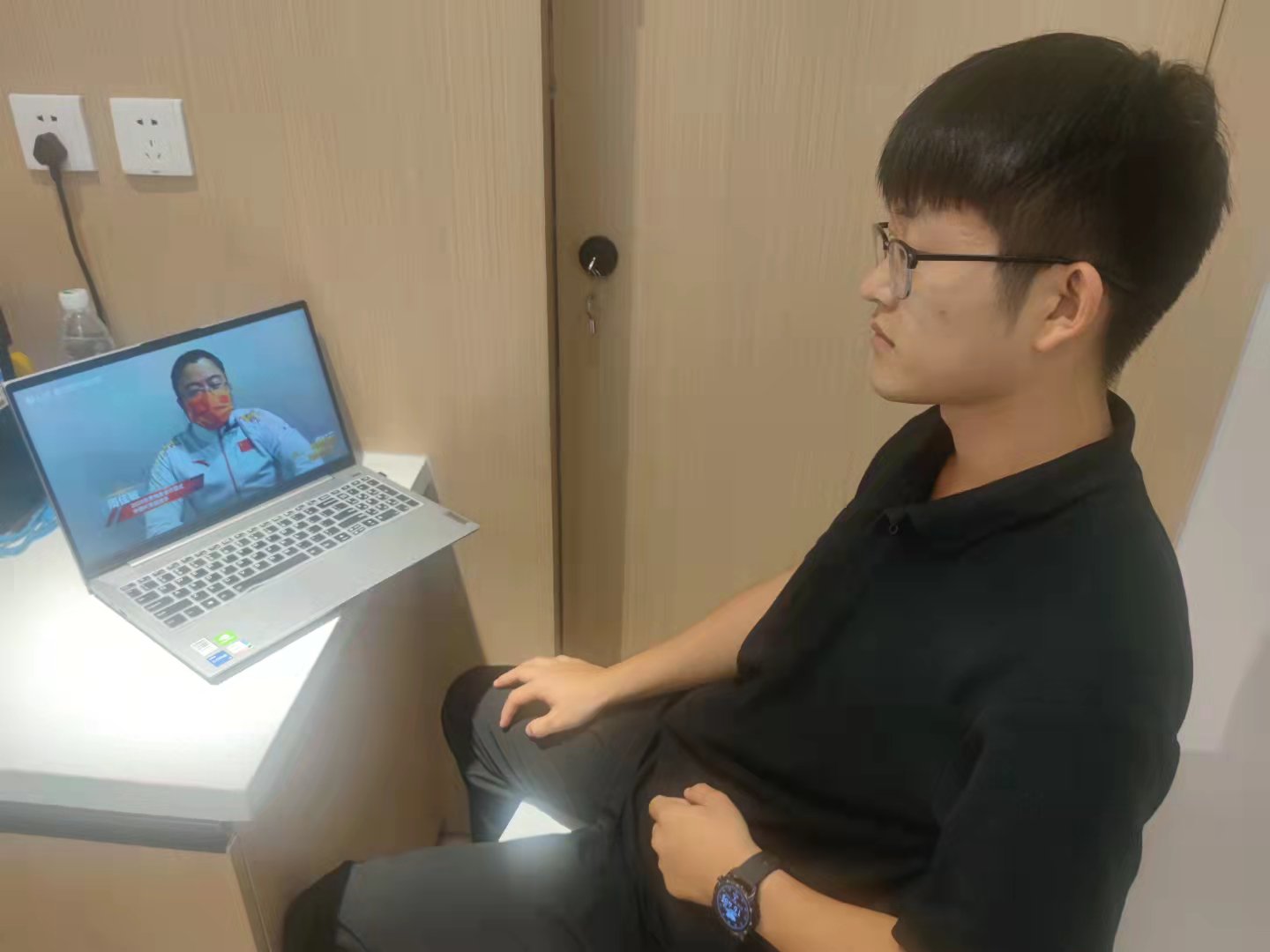 全体研究生同学于不同地点,同一时间,准时同上一堂课——奥运思政大课。开课时间一到,同学们或在宿舍或在科研室,都齐聚屏幕前,一同再次感受奥运激情,重温祖国荣耀时刻。