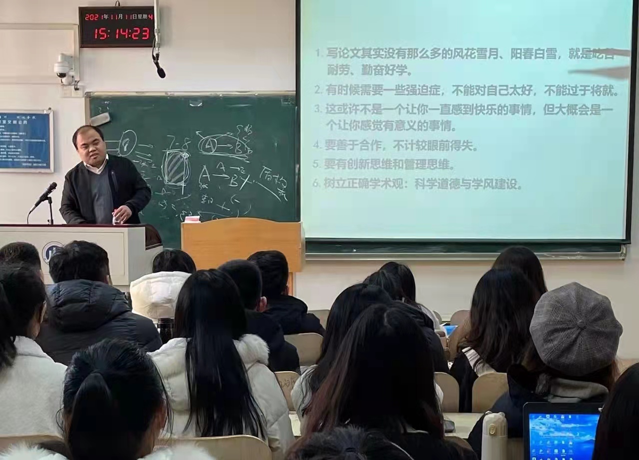 在逸夫楼Y206教室举办了“坚守学术诚信,弘扬科学家精神—研究生论文写作与学术规范”讲座,徐鹏教授担任主讲,我院2020级全体研究生参加。