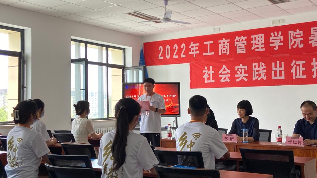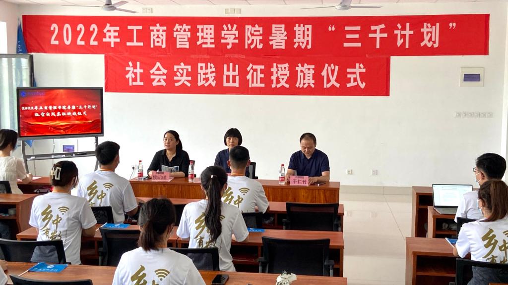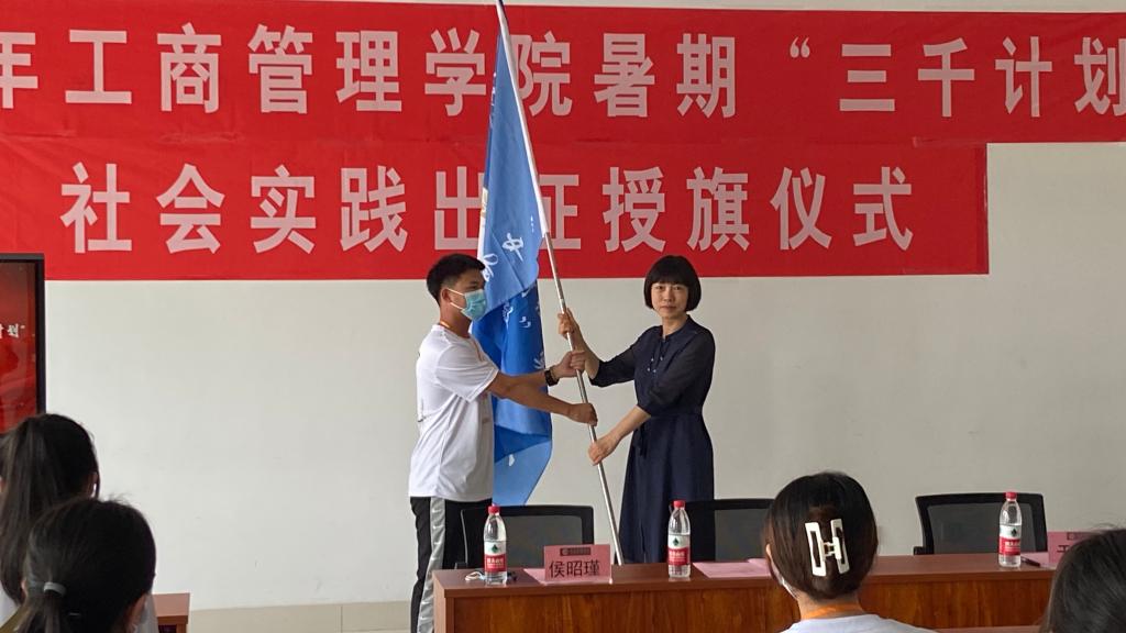 在圣井校区8330教室举行2022年暑期社会实践“三千计划”授旗仪式。新澳彩资料院长苏昕、党委副书记侯昭瑾、市场营销系主任、政府绩效评价研究中心副主任于仁竹及带队老师、学生实践团队代表参加。侯昭瑾主持仪式。