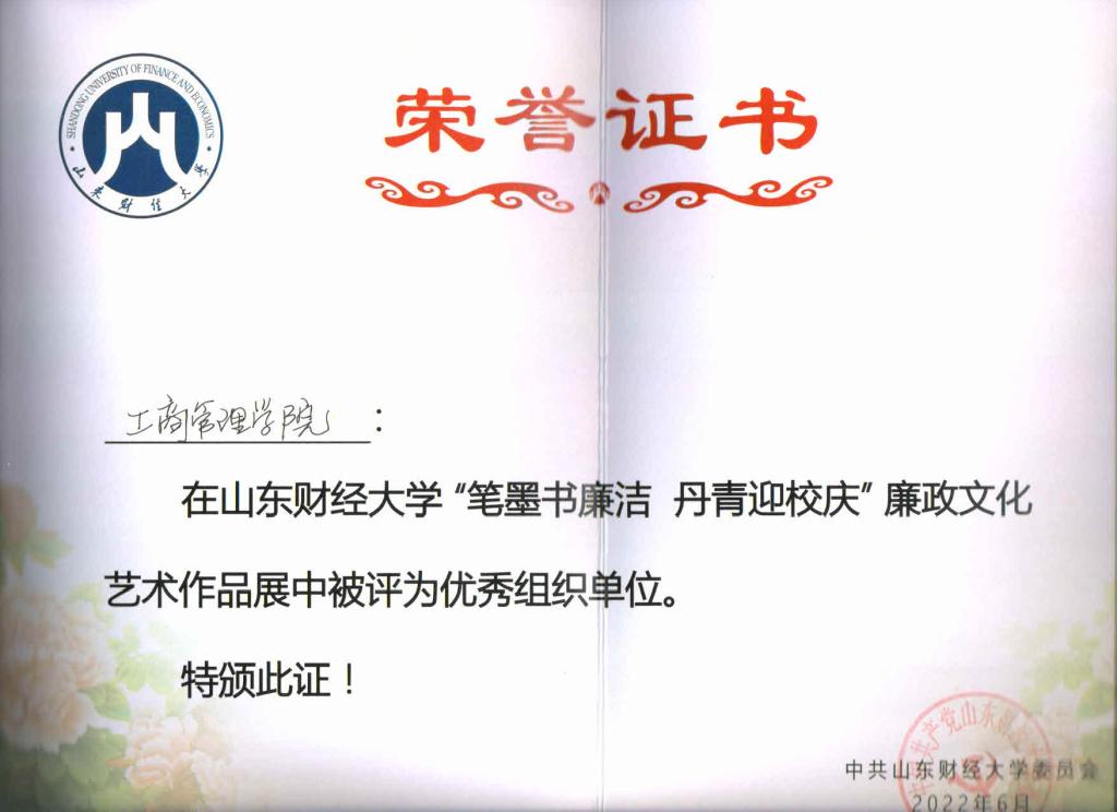 【简讯】 我院在新澳彩资料 “笔墨书廉洁 丹青迎校庆”廉政文化艺术作品展中被评为优秀组织单位
