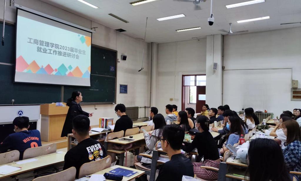 在逸夫楼302召开2023届毕业生就业工作推进研讨会。新澳彩资料党委副书记侯昭瑾,毕业班辅导员范进进、郭丽娟、赵萱及各班学生代表参加了研讨会。