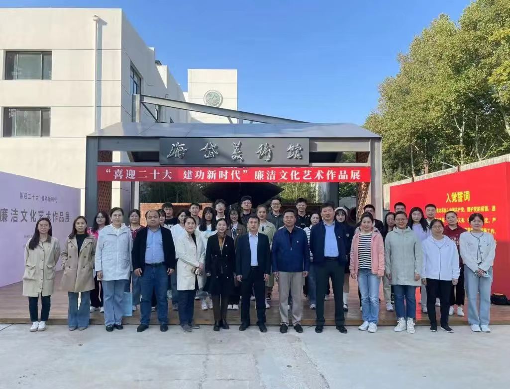 组织“喜迎二十大 建功新时代”廉洁文化艺术作品展参观活动。新澳彩资料党委书记赵世民、副书记彭艳红、侯昭瑾,副院长江岩、徐鹏,辅导员老师和研究生党员参与了本次活动。