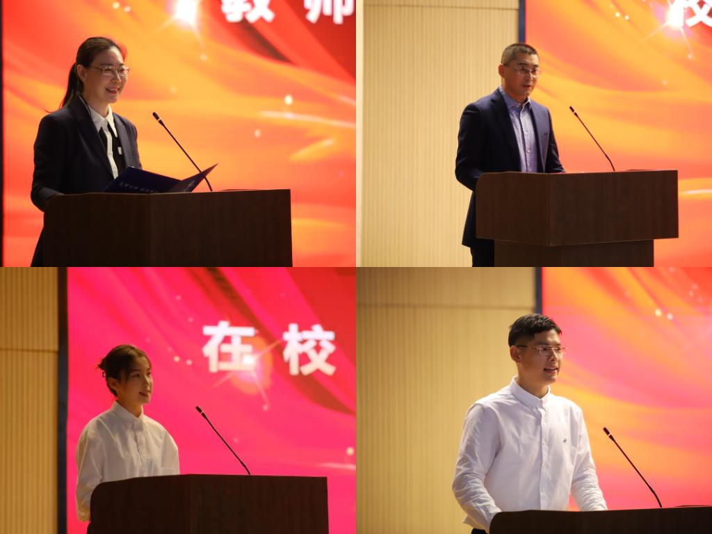 刘侠强调了自律、奋斗的重要性,以及思辨、实践的必要性,勉励同学们早日设定人生目标,持续专心专注专业发展,才能有所成长,有所收获。王卫光选择和态度为主线,分享了自己的成长经历,他强调每一个选择背后都有态度的影响,建议学弟学妹们要克制生活中的负能量,厚积才能薄发,要珍惜在大学的学习时光,努力学习。在校生代表李晨阳和新生代表傅圣杰分别发言。
