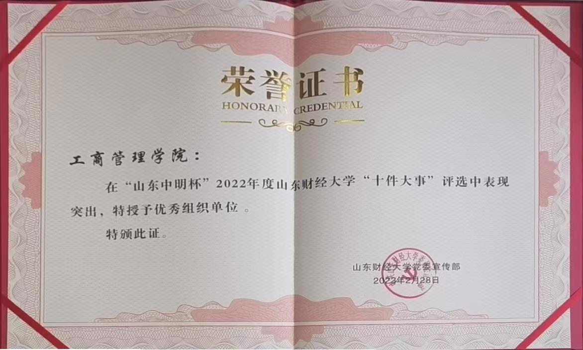 2月28日下午,“山东中明杯”2022年度新澳彩资料 “十件大事”评选总结会议在燕山校区举行。我院荣获优秀组织单位奖。