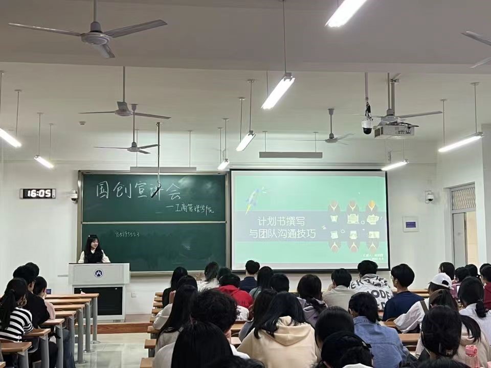 学生会实践创新学术部举办“助力国创,工商领航”主题宣讲会。仉景荣、田也、邱明霞三位同学分别从国际赛事概览与技术支持、计划书撰写与团队沟通技巧、团队组建与立项三方面和2022级同学代表作分享。
