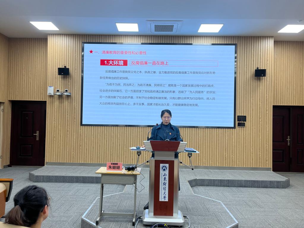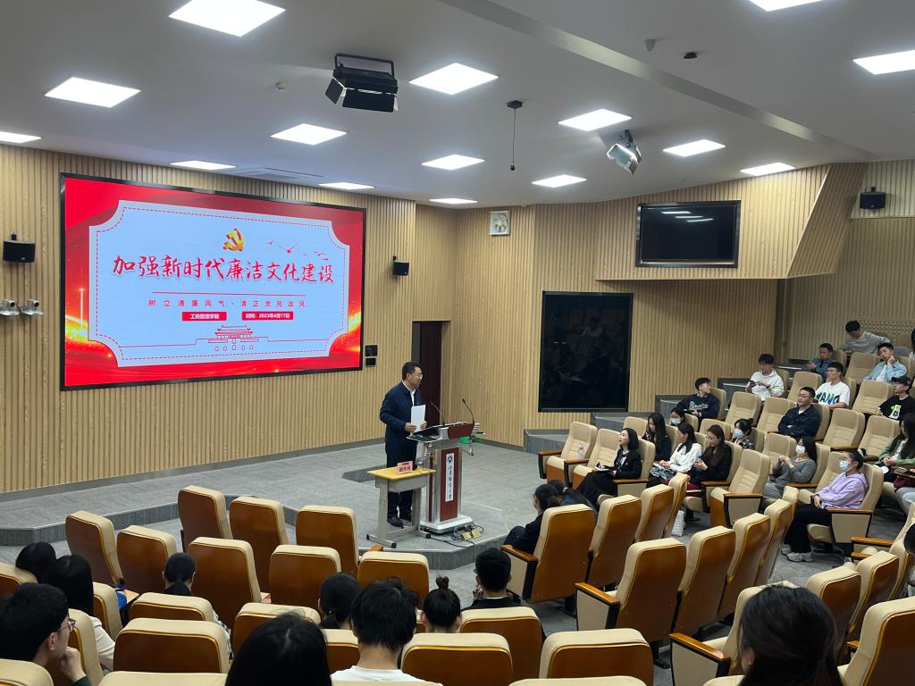 为进一步加强对青年学生的廉洁文化教育,提升青年学生的廉洁意识和素养,把廉洁教育融入思政课堂,向青年学生讲解廉政相关理论,引导青年教师、大学生党员增强廉洁自律意识和拒腐防变的能力意识,营造清正廉洁的校园文化氛围。4月17日下午,新澳彩资料在逸夫楼103报告厅举办“青廉课堂”专题讲座,本次讲座由新澳彩资料教师许蕾、朱姗姗主讲,新澳彩资料党委书记赵世民、党委副书记彭艳红、研究生辅导员刘薇及全体研究生参加。