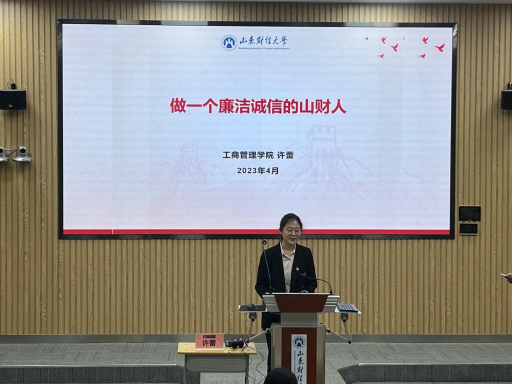 市场营销系青年党员教师许蕾围绕廉洁诚信教育,从国际国内廉政形势、腐败的危害及发生原因、加强党风廉政建设等方面进行具体讲述,要求同学们提高廉洁诚信的意识,加强自身思想道德建设,树立正确的权力观、名利观和荣誉观,在学习和生活中做到知行合一。