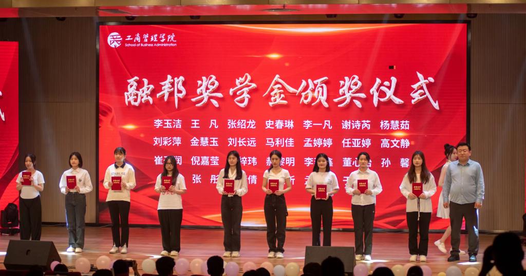 颁奖仪式的举办激励着新时代的工商青年,继续传承工商精神,在学业上励志勤学,实践上刻苦磨练,学习榜样、争当榜样,让榜样的精神浸润人心,长久激荡,形成崇德向善、见贤思齐的良好校园文化氛围。我院也将和明德集团、融邦集团携手深化校企合作,构建校企协同育人平台,共同推进高素质人才培养。