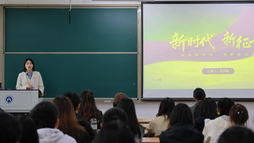 宣讲队成员围绕党的二十大报告的丰富内涵和重大意义,结合自身的学习和生活经历,进行了全方位、多角度地宣讲,系统讲述了我国十年间取得的标志性成果、新冠疫情下中国共产党人的大智慧以及党的二十大擘画的宏伟蓝图,并向同学们提出倡议:作为新时代青年,要肩负起时代重任,将个人成就与党和国家的命运紧密相连,牢记“请党放心,强国有我”的铮铮誓言,在建设社会主义现代化强国的新征程上贡献出自己的一份力量。