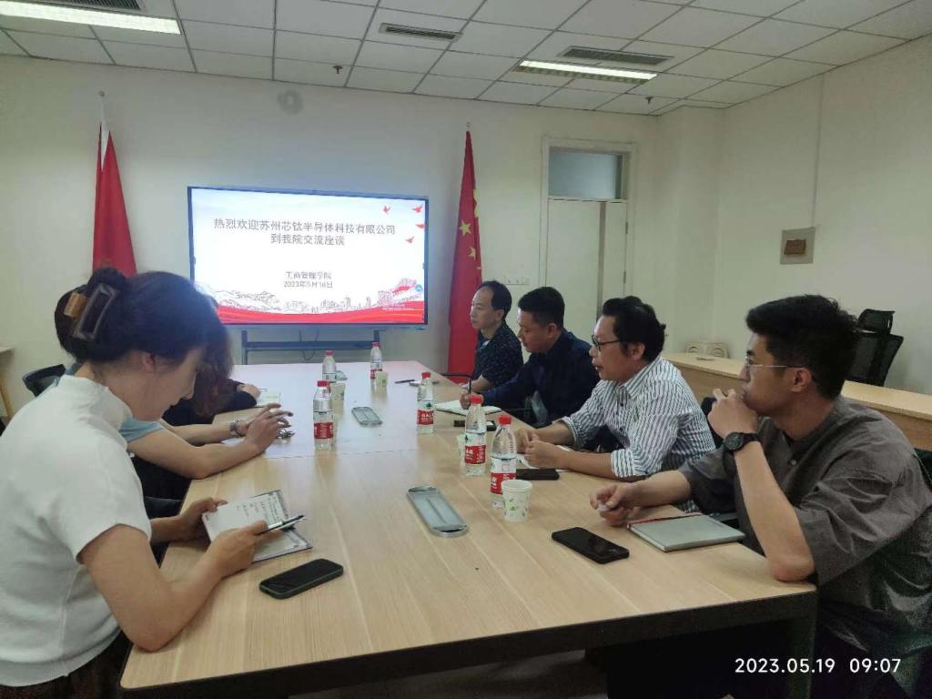 为加强与企业合作,拓展优质就业岗位,促进毕业生就业,5月19日新澳彩资料特邀苏州芯钛半导体科技有限公司到校开展“访企拓岗“活动之企业进校园活动。苏州芯钛半导体科技有限公司总经理苏勇信、管理部部长赖建豪、制造部部长饶文星、代工事业部部长萧旻浩一行4人应邀参加,新澳彩资料党委副书记侯昭瑾、海外特聘教师杨俊煌、就业办主任张景赛参加座谈。