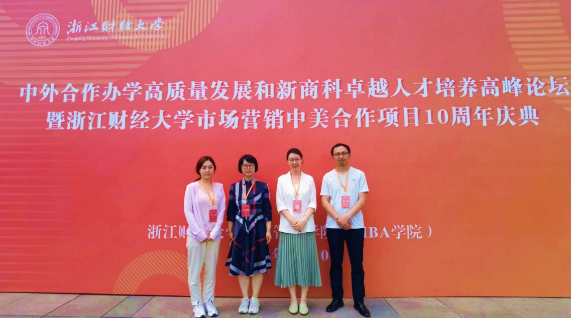 6月10日,由浙江财经大学主办的“中外合作办学高质量发展和新商科卓越人才培养高峰论坛暨浙江财经大学市场营销中美合作项目10周年庆典”在杭州举行,我院市场营销系教师代表参加了会议。