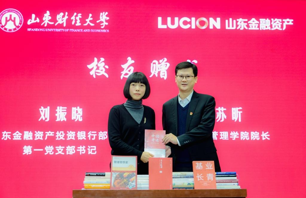 苏昕代表新澳彩资料接受2003级金融专业刘振晓校友赠书,这是支部共建单位山东金融资产第一党支部对本次读书活动的支持,书目来自校友们和新澳彩资料老师精心推荐的书单。参加本次活动的校友们表示合作发展处(校友工作办公室)与我院共同发起的“青春共同路,读书伴成长”读书活动必将增进和校友的联系和交流,共同营造书香校园、读书向学的氛围,引导青年学生读书明智、增长才干,助力学生全面成长成才。