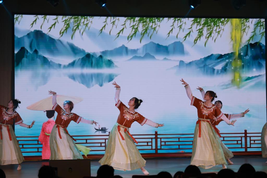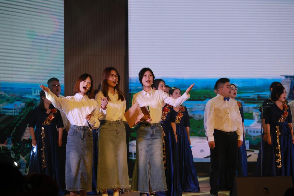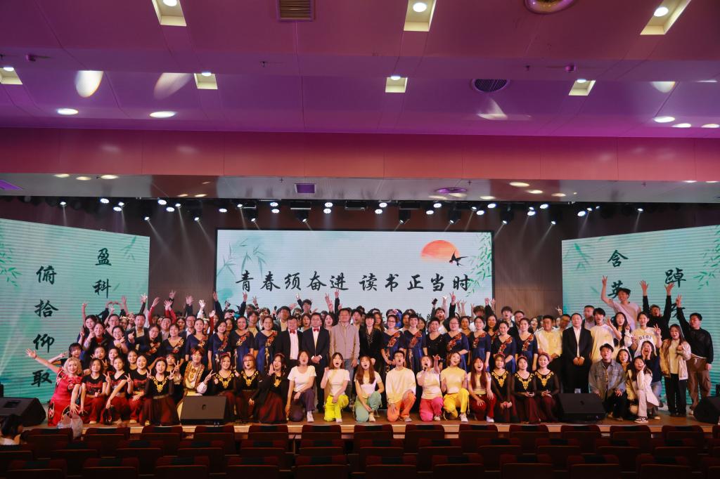 晚会在《因为选择,所以热爱》主题宣传片中拉开序幕,开场舞《奔跑的青春》瞬间点燃了现场的氛围。晚会共分为三个篇章。民乐演奏《神话》《大鱼》、歌曲《篇章开出花》《大梦想家》用悦动的音符唱响热情洋溢的青春时光;古典舞《江山水意》、爵士舞《火》、民族舞《维韵汉章》以曼妙的舞姿呈现文化传承与创新的魅力;小品《没有学习的人不伤心》用幽默诙谐的台词诠释了学习的意义;情景朗诵《以青春之名》吹响了新时代新青年勇担时代使命的号角。30余位合作企业代表、校友代表、师生代表共同演唱《书香里的中国》,将晚会的氛围推向高潮。