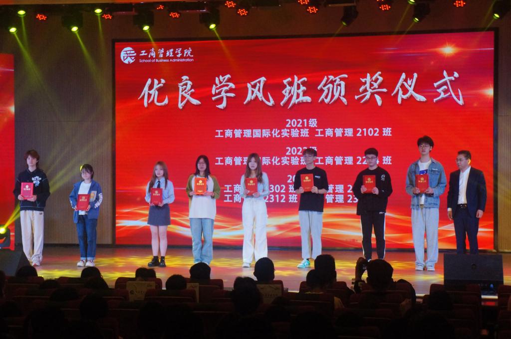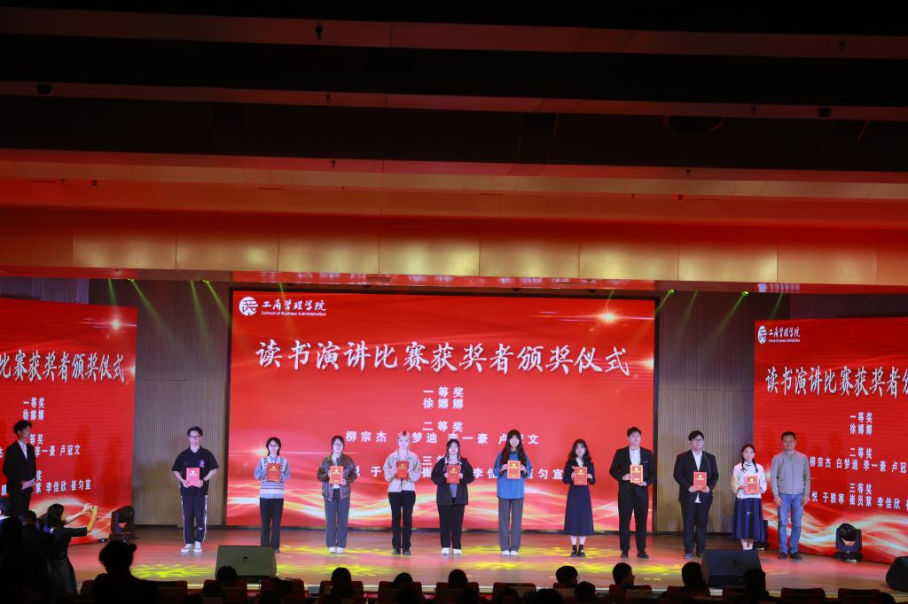 王晓迪、赵世民分别为读书演讲比赛获奖选手和优良学风班颁奖。