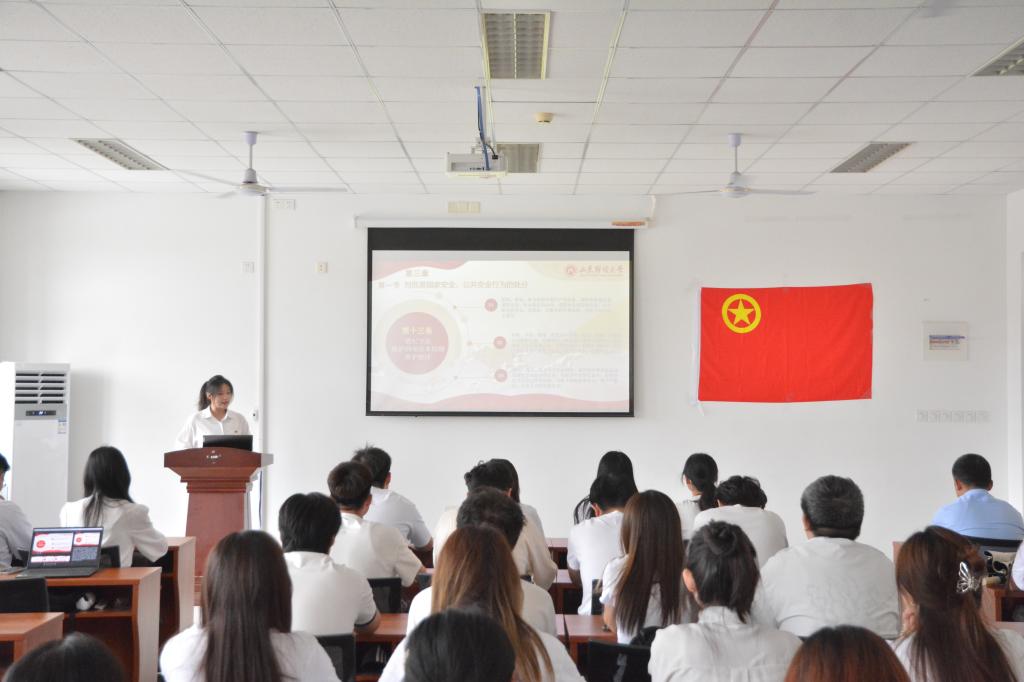 学生违纪处分条例》为载体,各位领学同学逐条讲解了校规校纪的重点内容,讲解过程中进行提问、分享、讨论、具体案例介绍等多种形式,增强了同学们参与此次活动的积极性,将校规校纪以更明晰的形式展示出来。在分享与讨论环节中,同学们积极发言,就自身在校园生活中遇到的与校规校纪相关的问题进行了深入探讨,并提出了许多富有建设性的意见和建议。此外,为确保同学们能够学以致用,还特设了知识抢答环节。通过抢答环节,同学们得以检验自身对校规校纪的掌握程度,同时也为未来的校园生活提供了有力的行为指南。