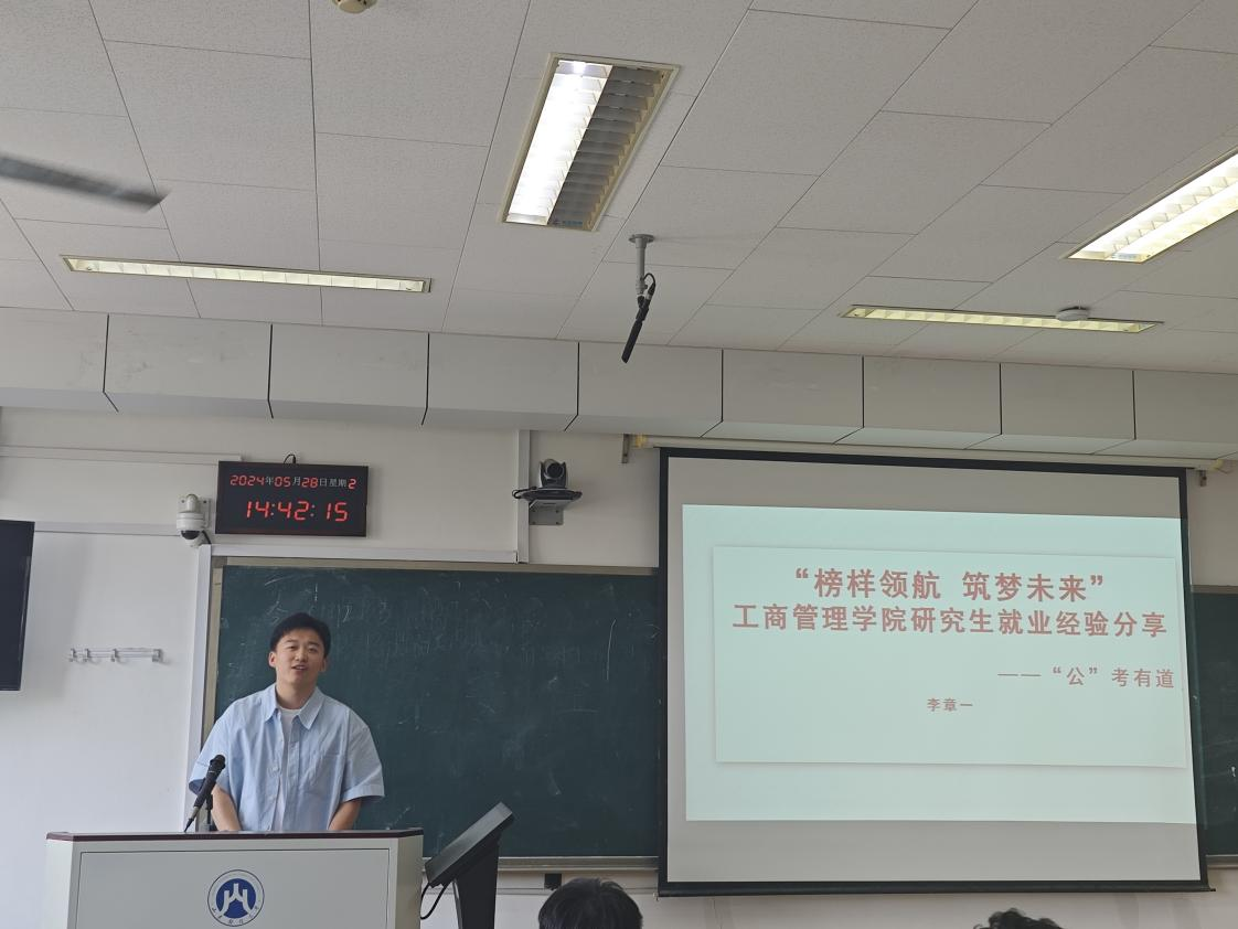 为进一步加强同学们对公务员考试的了解,提升公务员考试的备考能力,5月28日下午,我院于逸夫楼219举行“榜样领航助力未来”为主题的研究生就业经验分享会(二):“公”考有道。本次活动邀请我院研究生第一党支部书记、2021级硕士李章一分享考公的经验,会议由研究生会主席曹炳凯主持,研一、研二全体研究生参加。