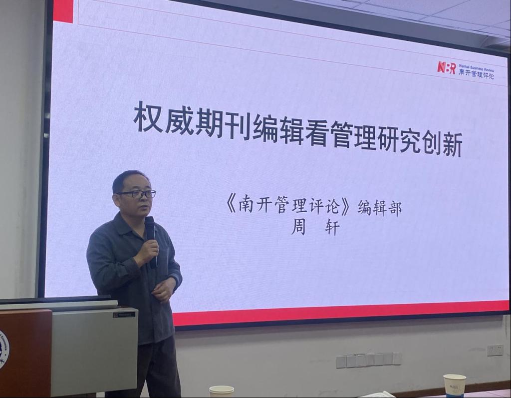 周轩博士结合《南开管理评论》审稿情况,从选题、执行以及细节三方面详细分析了审稿时关注的重点问题,鼓励大家探索多元研究方法。然后,周轩博士借助年高被引文献数据统计结果,向与会师生们展示了近几年《南开管理评论》高被引文章的选题领域及类型、关注热点和质性研究等特征,呼吁师生要学会研读《南开管理评论》历期主编寄语中所传达出的办刊导向,开展高质量质性(案例)研究创新,规避案例研究的常见问题,践行詹姆斯•马奇所提出的“讲好案例故事的三个标准”。最后,周轩博士建议大家关注大变局与新时代下管理研究创新的机会与挑战,应从实践出发发现当前领域研究的创新点,并针对老师在选题方向、投稿技巧等方面的问题进行了详细解答与探讨。