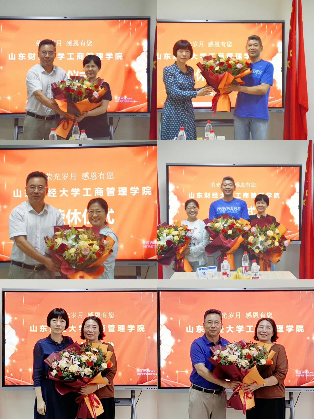 仪式最后赵世民和苏昕为荣休老师献上鲜花并赠送了纪念品。