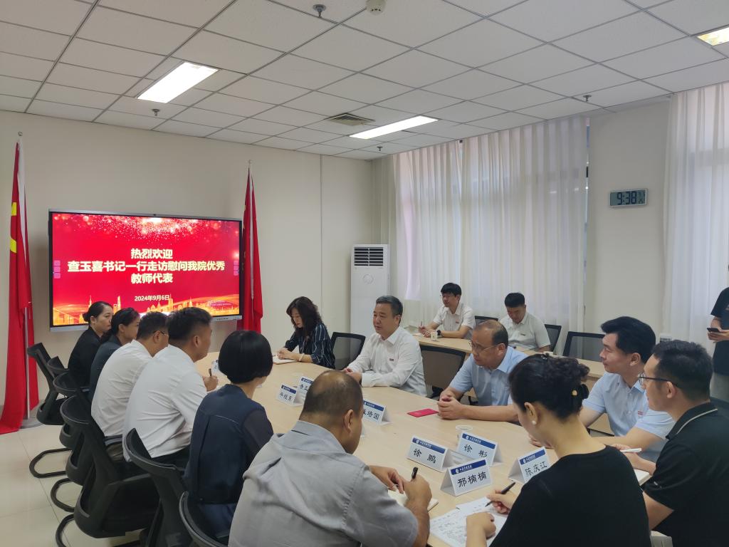 9月6日上午,在第40个教师节来临之际,校党委书记查玉喜、副书记张培国莅临我院,走访慰问优秀教师代表毕继东教授。