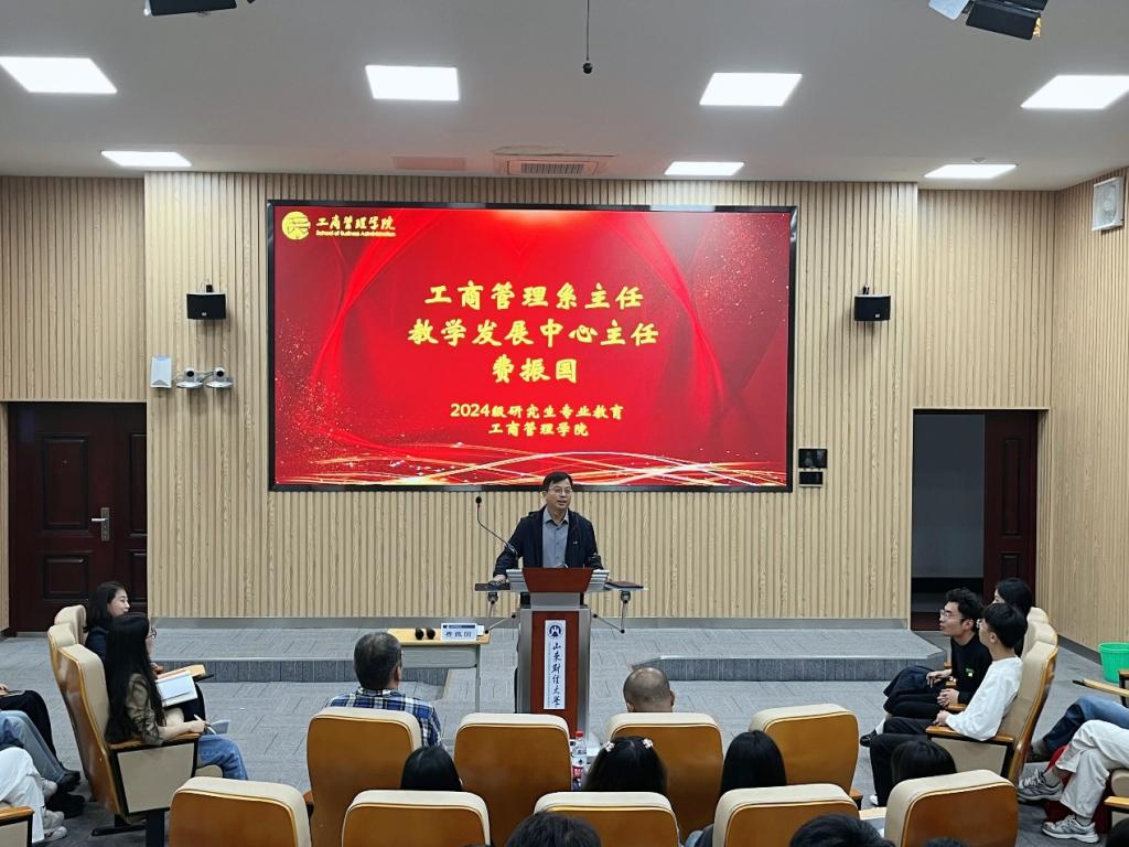 费振国就企业管理、技术经济与管理专业培养方案的调整进行了详细介绍,并提出了几点期许,希望同学们能够走进企业实践发现真正的研究问题并选择合适的研究方法,打开思维方式,度过有意义的研究生生活。