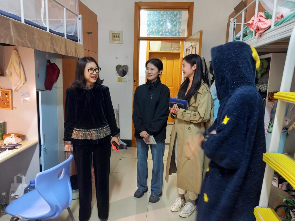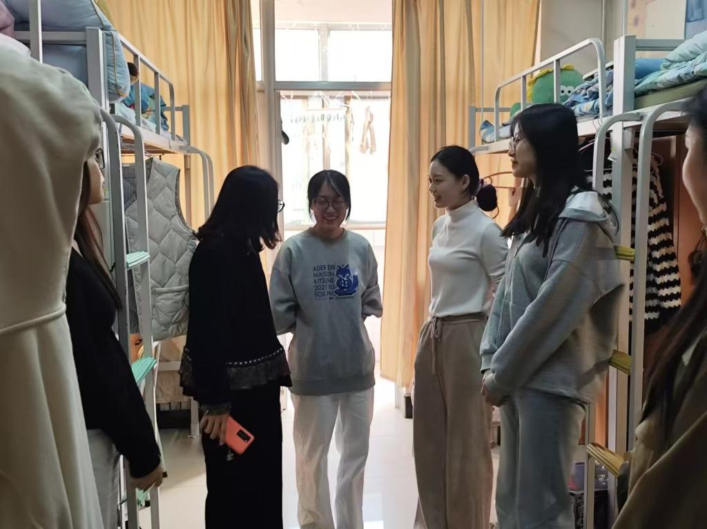 在寝室走访的过程中,彭艳红与同学们进行深入交流,亲切询问学生近期学习和生活状况,耐心解答同学们的问题,悉心叮嘱同学们保持健康作息,注意宿舍卫生,用电安全问题和养成良好的生活习惯。其他检查人员也积极向同学们宣传安全卫生知识,致力于提升同学们的安全防范意识。