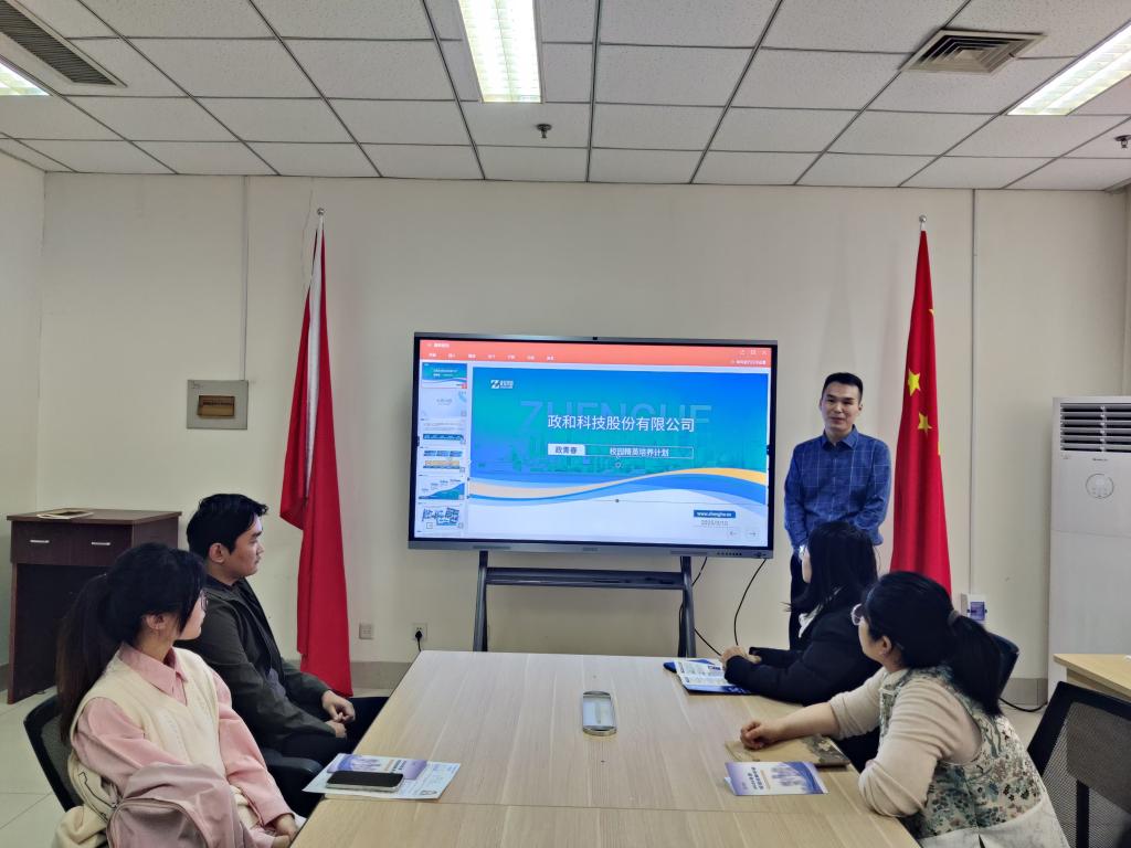 罗言斐充分肯定了新澳彩资料的人才培养质量,他介绍了公司的发展历程、核心业务及未来战略规划,详细讲解了公司的人才培养体系、岗位需求、薪资待遇和发展方向。他表示,随着业务的快速发展,政和科技对高素质人才需求日益增加,公司将进一步加强与新澳彩资料的沟通合作,共同为校企协同创新和人才培养贡献力量。