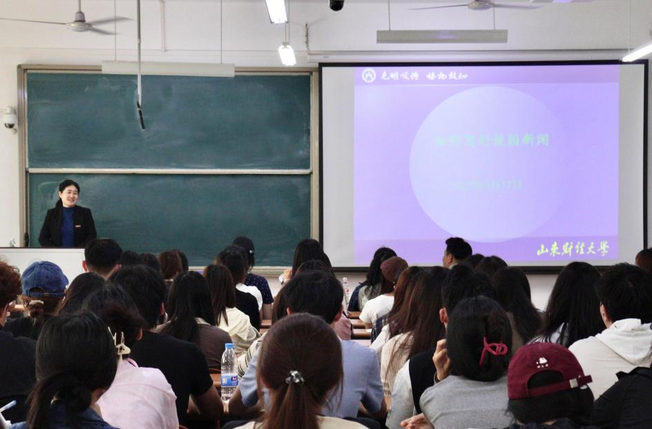 张艳霞结合多年工作经验,围绕新闻写作要素展开系统讲解。她从新闻的定义、六要素、特点、类型等基础知识入手,深入剖析了新闻稿的撰写过程,并重点阐述了标题拟定、导语凝练、主体展开、结语升华等技巧。针对校园新闻写作,她着重强调时效性、真实性、简明性与思想性的重要性。通过实际案例讲解并进行对比分析,指出常见写作误区并提出切实可行的优化方案,让师生们对新闻写作有了全新的认识。她鼓励师生在日常工作和生活中多思考、多积累、多实践,重视素材积累和“四力”沉淀,注重素材挖掘的深度与广度,强化新闻价值判断,将理论学习与实践紧密结合,在持续积累中锤炼写作功底。