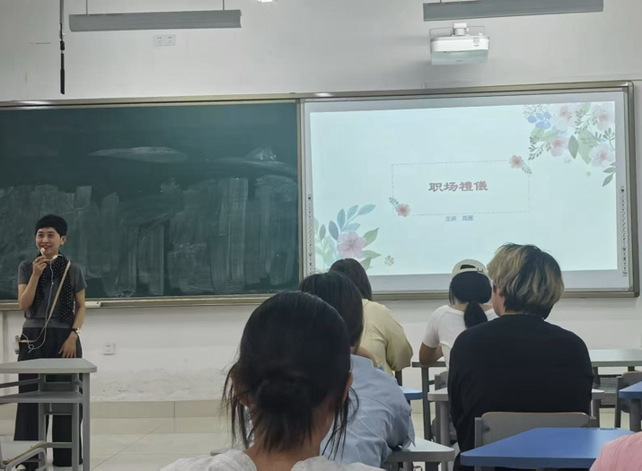在章丘校区举办大学生职场礼仪专题培训会。山东省文化和旅游厅专职讲师、山东省优秀共享课程《商务礼仪》负责人、中国民主促进会会员、新澳彩资料文化和旅游系教师高雁担任主讲嘉宾。