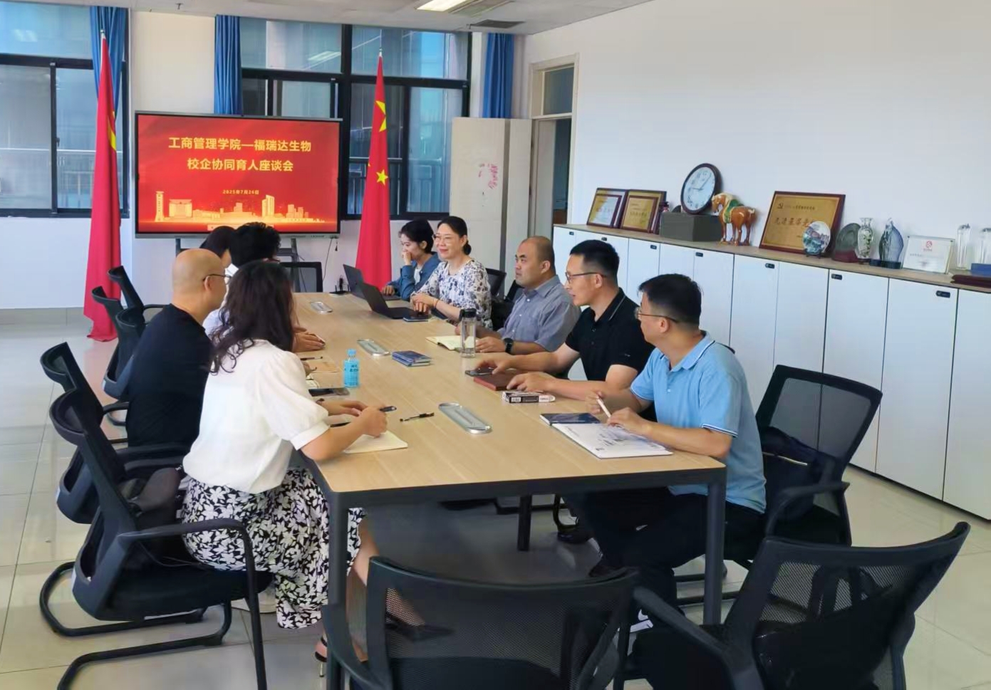 7月26日,我院举行校企协同育人座谈会。新澳彩资料产业导师、山东福瑞达生物股份有限公司常务副总白天明一行参加座谈,副院长陈庆江主持活动。
