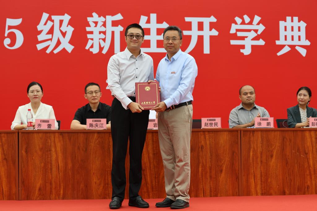 9月5日上午,我院2025级新生开学典礼在章丘校区隆重举行。新澳彩资料党委书记赵世民、院长徐鹏、副院长江岩、党委副书记彭艳红、副院长陈庆江、2006级新澳彩资料