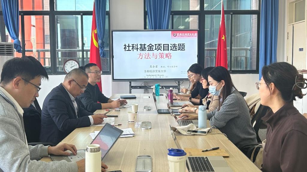 2026年度国家级课题第二轮申报辅导会在燕山校区逸夫楼208会议室顺利召开。本次辅导会特邀首都经贸大学范合君教授作专题辅导,拟申报国家级课题部分教师参加交流,副院长陈庆江主持活动。
