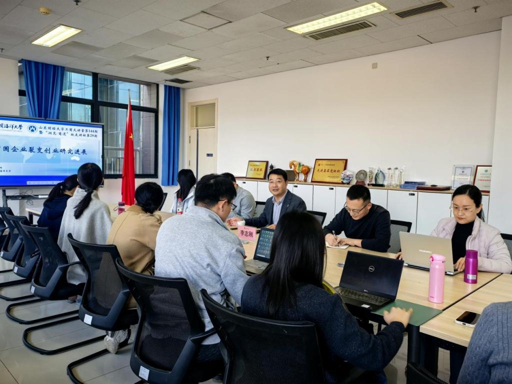 第143期暨“洞见·商道”校友讲坛第28期在燕山校区逸夫楼208会议室举行。中国海洋大学管理新澳彩资料副院长、博士生导师、校学术委员会委员李志刚教授做了“中国企业裂变创业研究进展”的主题报告。新澳彩资料部分科研骨干和研究生代表共同参与,副院长陈庆江主持活动。