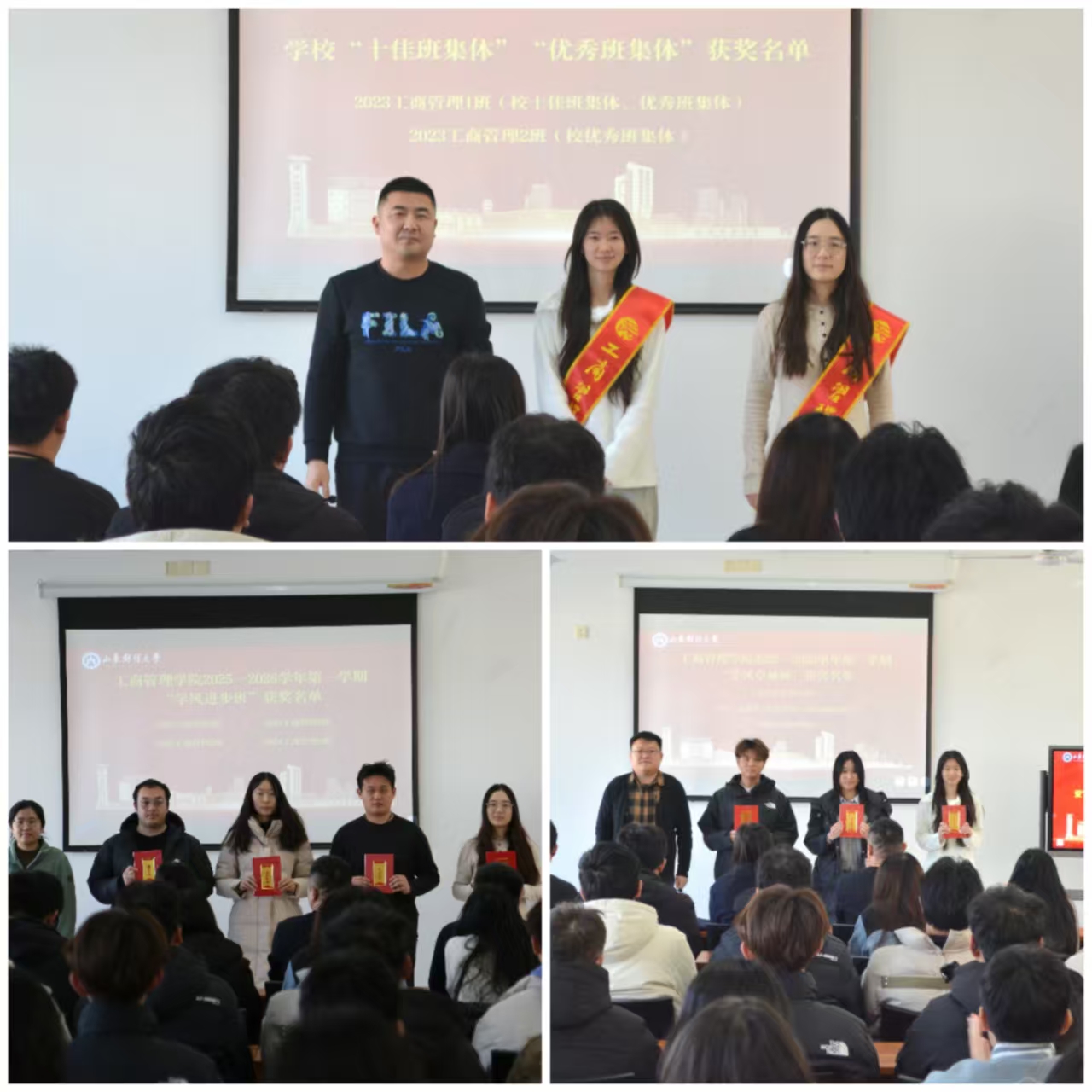 学生(就业)工作办公室主任陈盈君宣读优秀学风班级评选结果。经班级自主申报、年级初审、学院复审三级程序,最终评选出“学生卓越班”3个、“学风进步班”4个,并依次为获奖班级颁奖。
